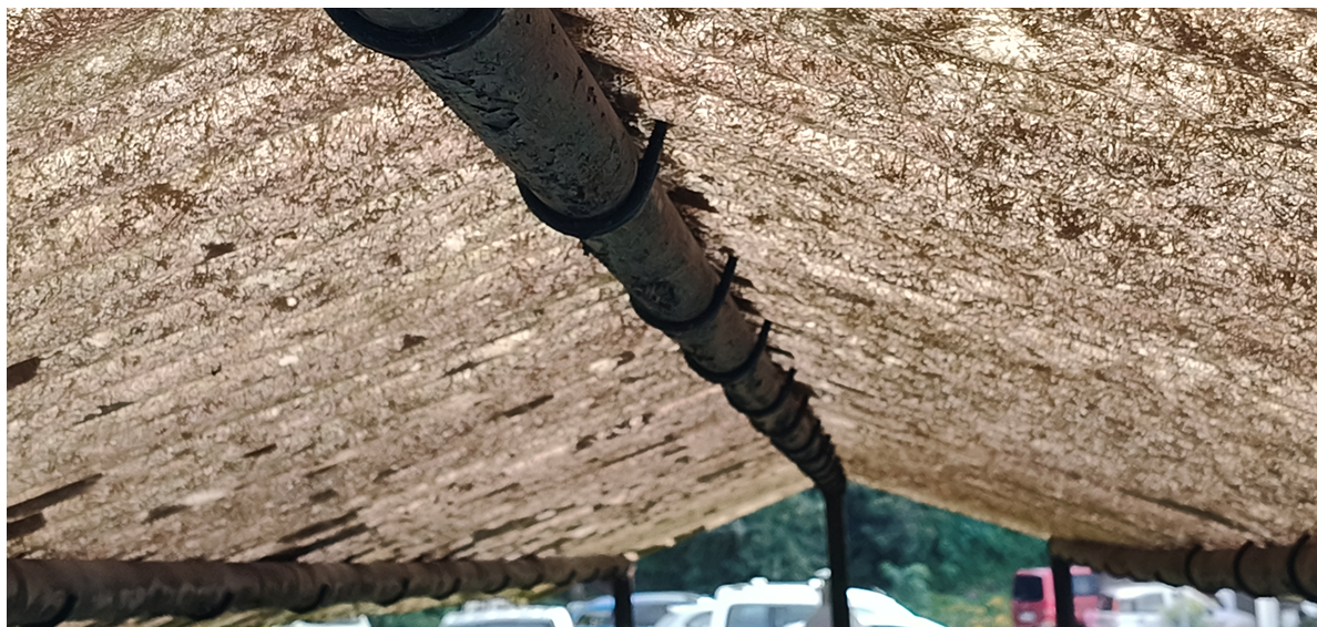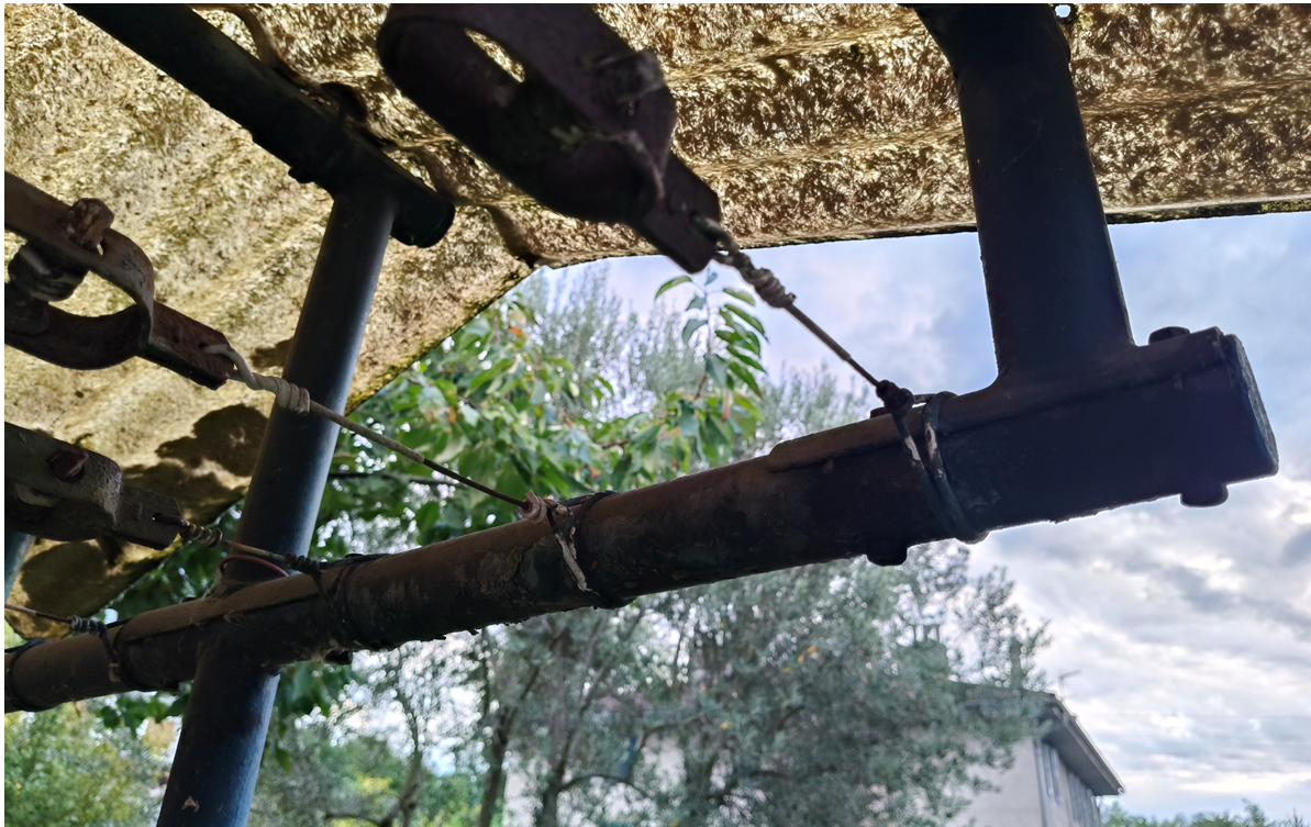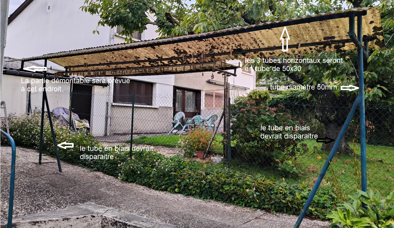 Comme le toit est en onduline, il ne fait pas trop de bruit quand il pleut (1 chambre d’enfant juste à côté). De plus cela laisse passer la lumière du soleil mais filtre les UV. La vue depuis la chambre d’enfant n’est pas trop gênée car la lumière du soleil passe encore. La première tempête avec des vents à 80 km/h a été le test : rien n’a bougé.
