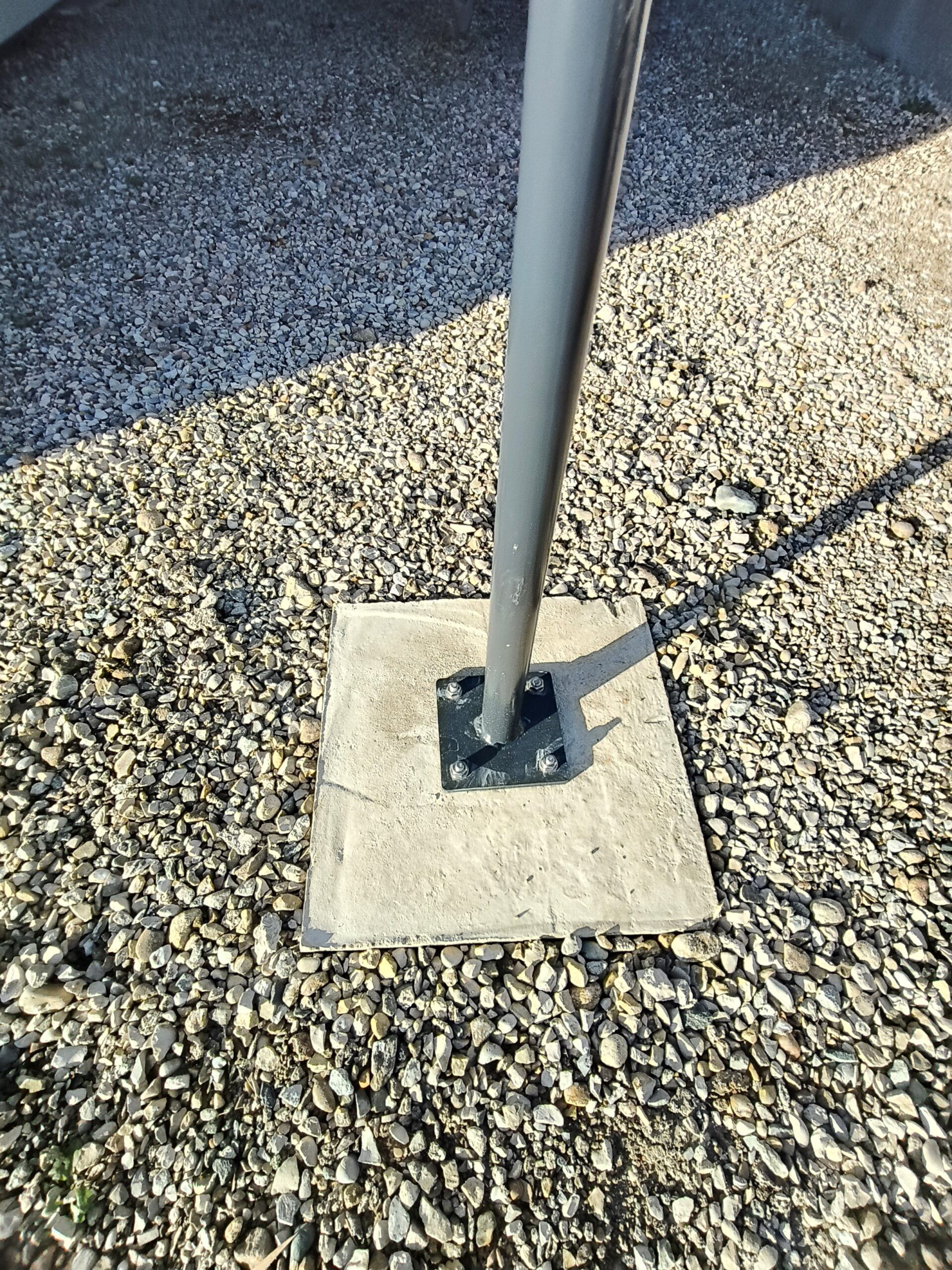 Nous avons pu choisir la longueur adaptée à l’emplacement choisi, la hauteur du fil, l’écartement entre les fils, la couleur. Ensuite on a coulé 2 blocs de béton 60x60x60 pour les 2 socles.